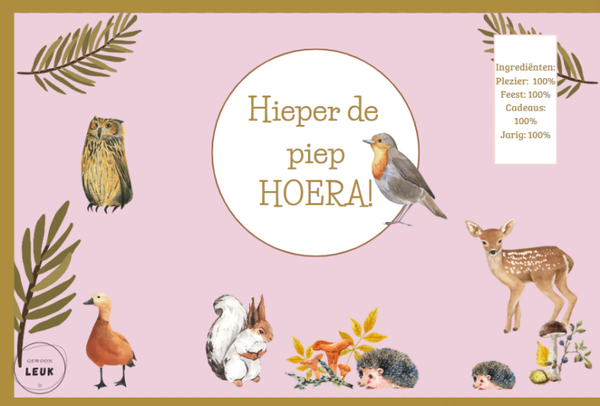 De standaard versie van €0,99 is met de tekst: Hieper de piep HOERA!